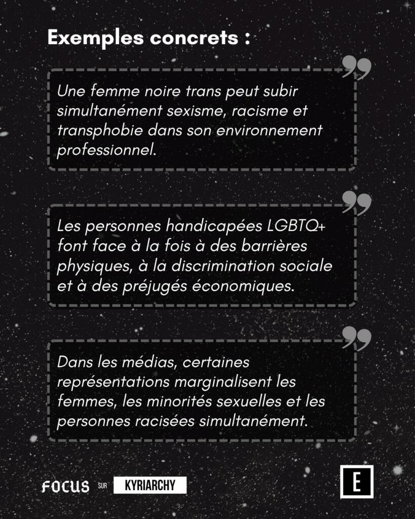 - Une femme noire trans peut subir simultanément du sexisme, du racisme et de la transphobie dans son environnement professionnel.