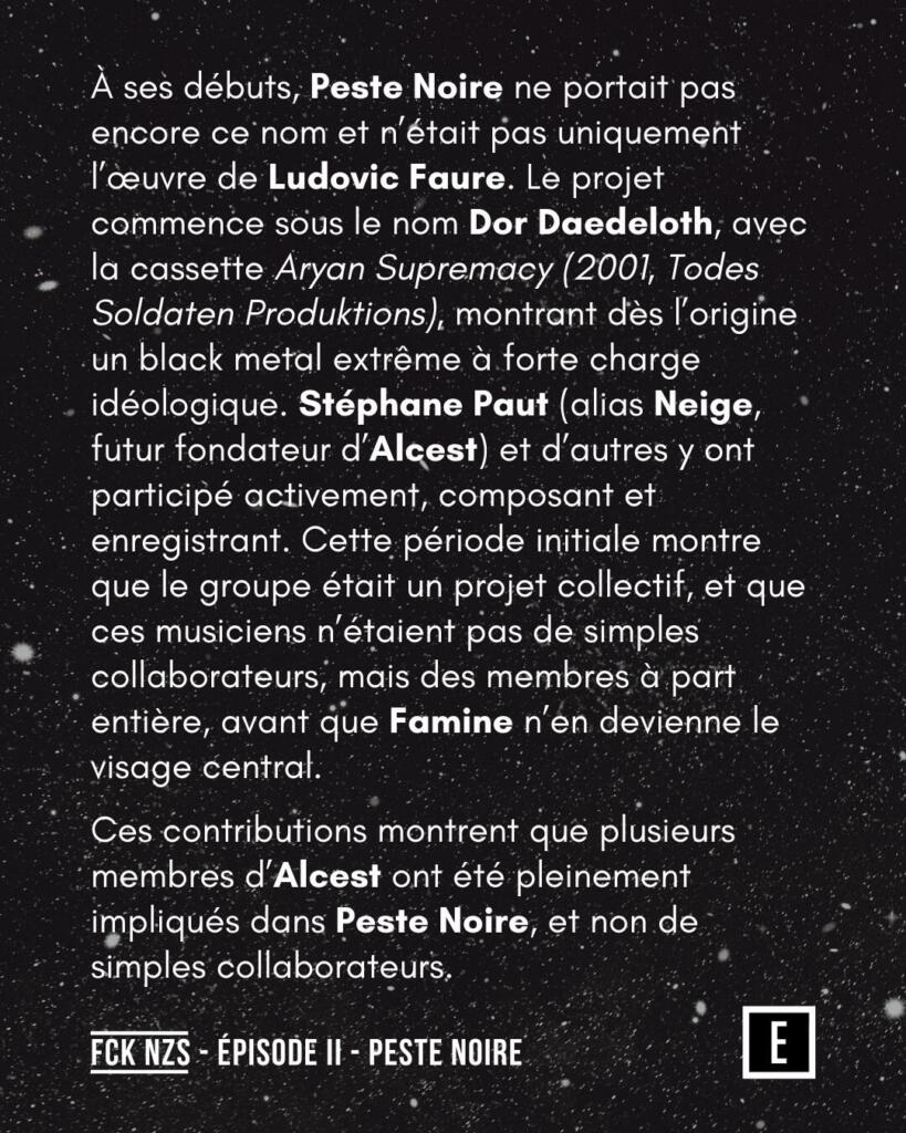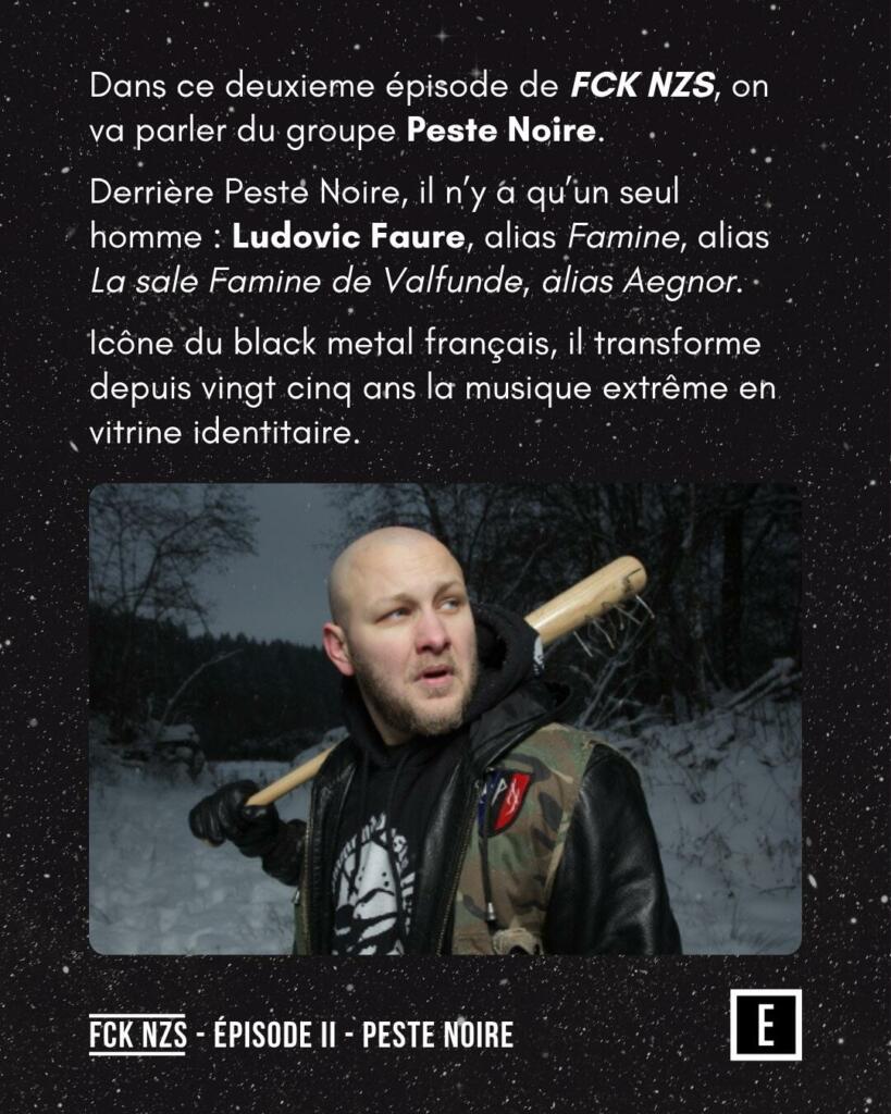 Peste Noire FCK NZS explore le parcours de Ludovic Faure, alias Famine, et les controverses entourant le groupe Peste Noire. Cet épisode analyse ses collaborations, ses textes et l’idéologie qui se cache derrière ce projet de black metal extrême.