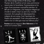 “Le Black Metal est la mémoire musicale de nos Aïeux sanguinaires et de sang, il est l’hymen de la Tradition et du vieux patrimoine racial avec le fanatisme, l’inconscience et la rage d’une jeunesse aujourd’hui perdue. Le BM est un intégrisme, une musique intègre qui m’aide à rester intact au sein d’un monde mourant, d’un peuple en décomposition, indigne de son sang. Il est l’apologie du Passé noir européen. Il est une psychose qui aide à fuir un réel que nous ne tolérons plus.”